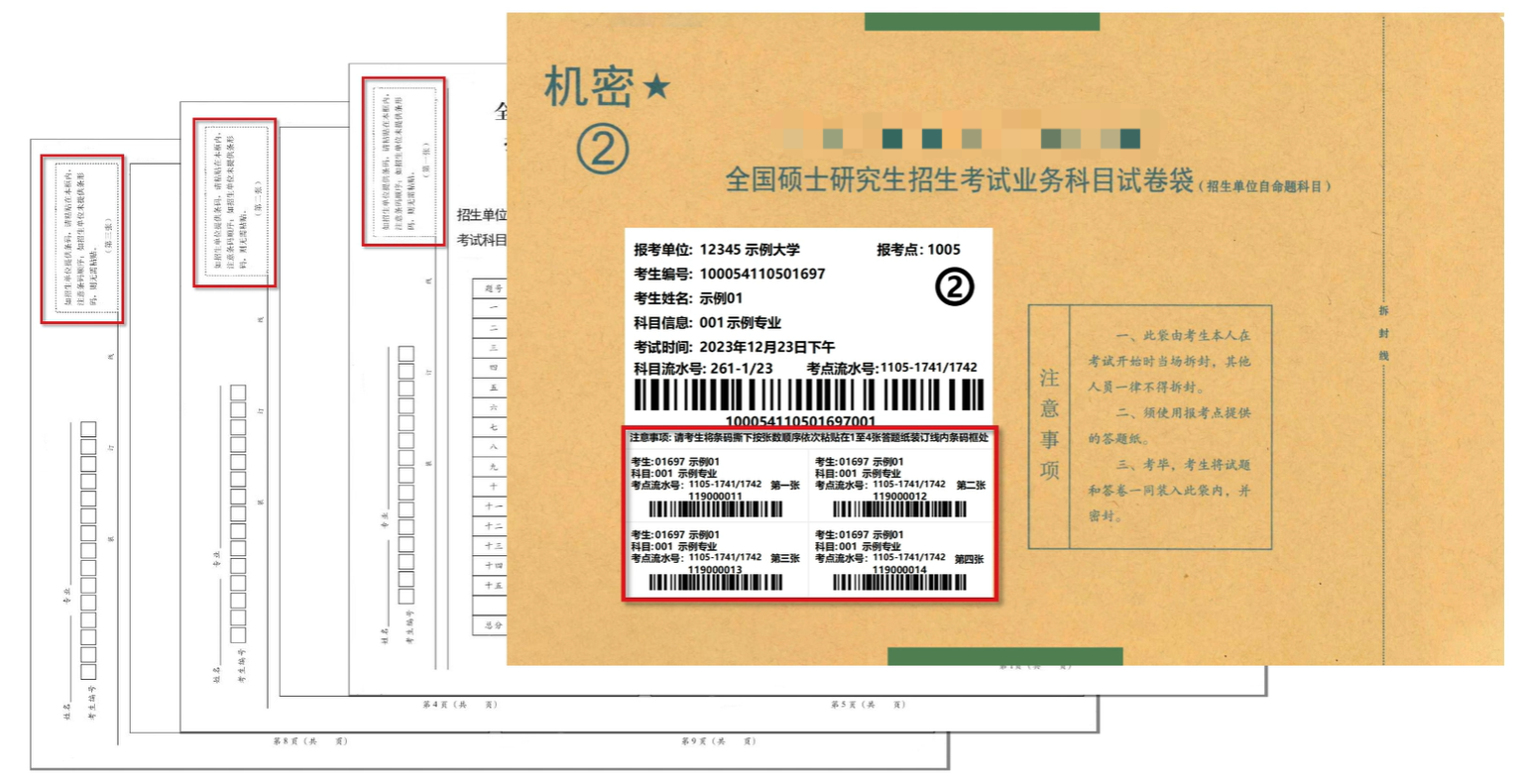 考生拿到自命题试卷袋后,首先请认真核对试卷袋上的个人信息,包括姓名、考生编号、考试科目等。如信息有误,请及时向监考员反馈。个人信息确认无误后,再将条形码按顺序依次揭下,并粘贴在1至4张答题纸对应的条形码粘贴框处。