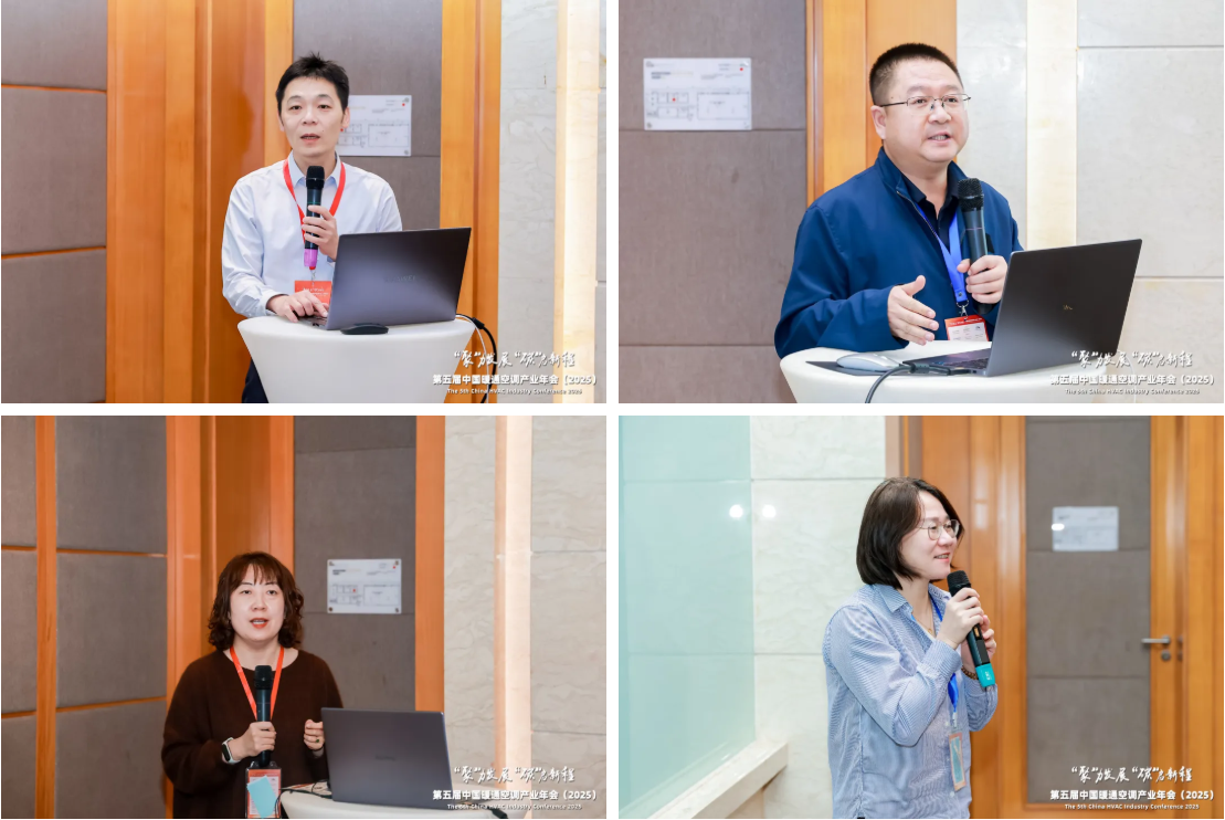于震、李效禹、高彩凤在主题沙龙环节分别作了《语义集成:下一代建筑智能化集成框架初探》、《集成二氧化碳空气源热泵的智慧型移动式供热装置》、《零碳园区政策及标准解读》的主题报告。李怀主持了“AI技术助力暖通产业未来发展”专题沙龙。
