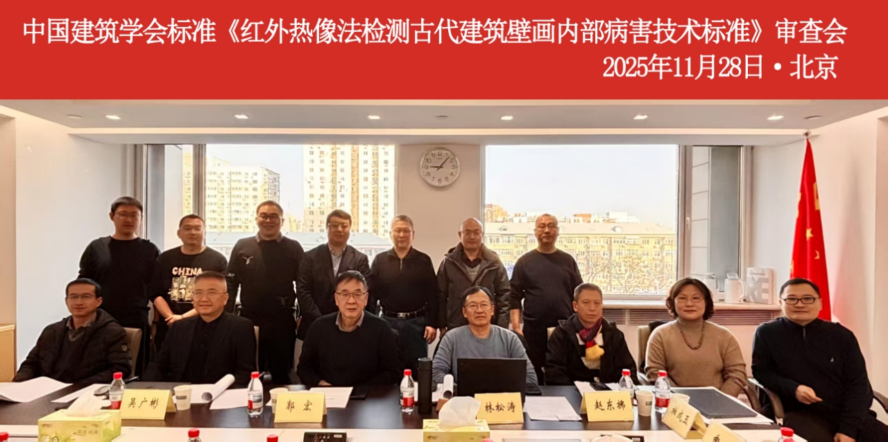 会议成立了由北京科技大学教授郭宏任组长、中冶检测认证有限公司教授级高工林松涛任副组长的审查专家组。审查专家按照中国建筑学会标准工作委员会的审查要求,对《标准》内容进行了全面审查,并提出了修改意见。与会专家认为,《标准》编制内容科学合理、可操作性强,与现行相关标准相协调,规范红外热像法在建筑壁画空鼓病害检测中的应用,对壁画保护和修复工作具有重要意义。审查专家组一致同意《标准》通过审查。