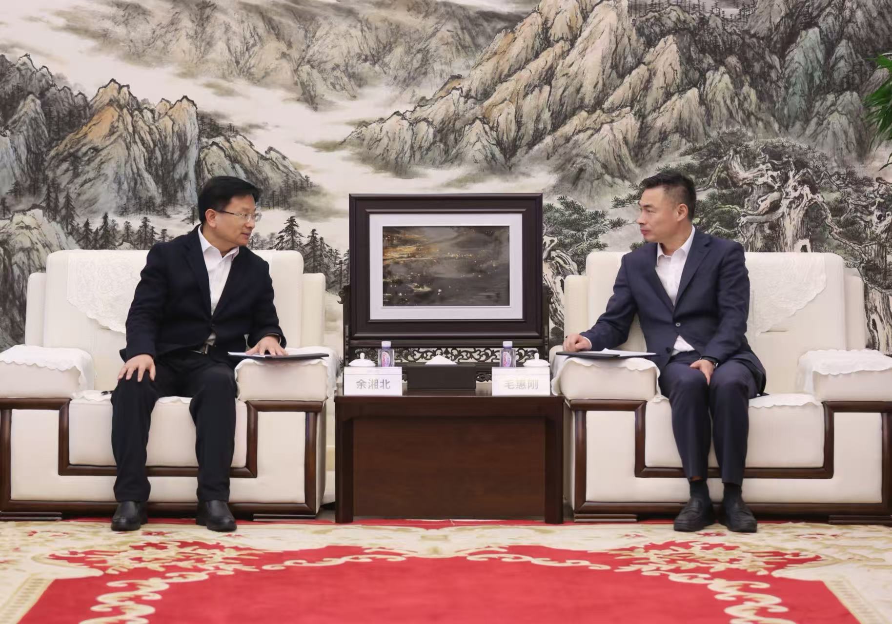余湘北对毛惠刚的热情接待表示感谢,他介绍了中国建技的发展历程、业务布局及核心技术优势。他表示,葛洲坝三公司在基础设施建设、投资运营及海外业务方面实力雄厚。中国建技作为科技型中央企业,长期致力于房建科研、规划设计和施工,重点发展EPC工程总承包、装饰装修、机电安装、数据中心建设、岩土工程和既有建筑改造等全过程服务。中国建技在科研创新、建筑智能化等领域积累了丰富经验,尤其在新型城镇化、智慧城市、大健康、乡村振兴及一带一路建设等方面特色鲜明。